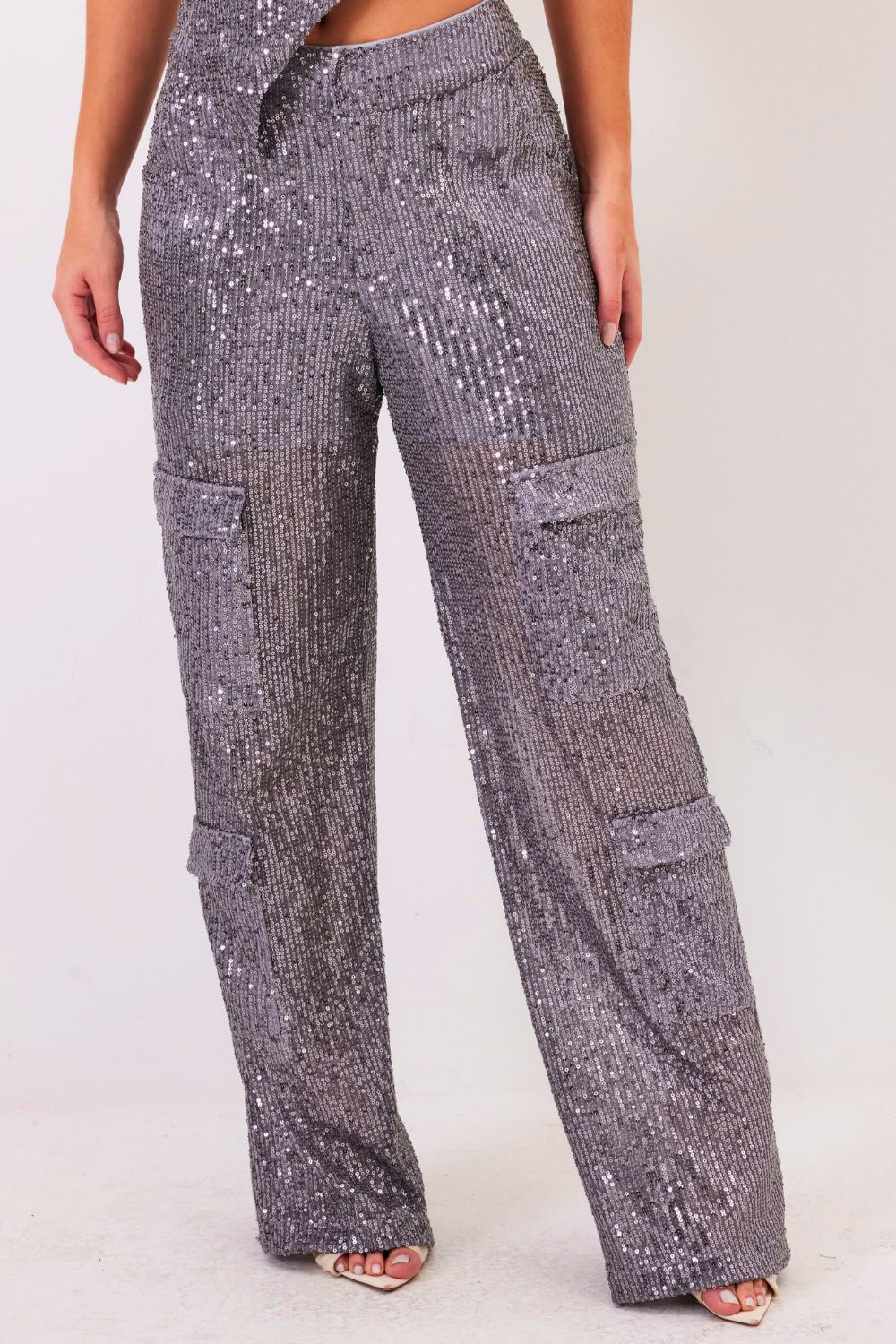Calça Feminina Cargo Paetê Planet Girls Cinza Escuro