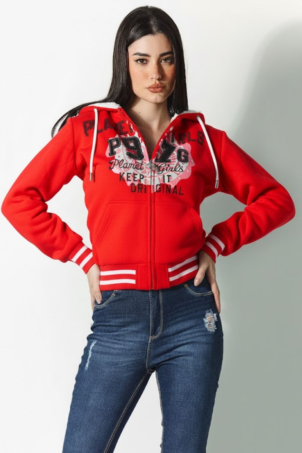 Moletom Feminino Dupla Face Estampa 97 Planet Girls Vermelho Claro